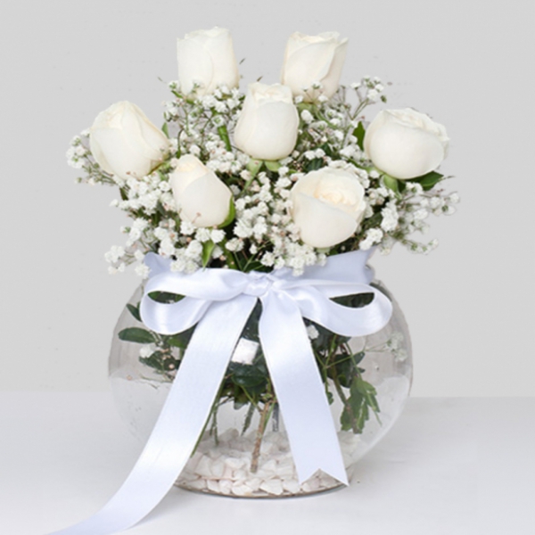 Ürün Kodu: LC74Cipso Ve Yeşilliklerden Oluşan 7 Adet Beyaz Gül Aranjmanı
