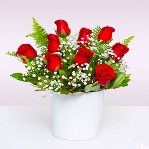 Ürün Kodu: LC739 Adet Kırmızı Gül Seramik Vazo Cipso Ve Yeşillikler