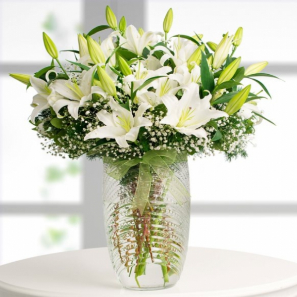 Ürün Kodu: LC111Sevdiklerinizi sade ve şık bir aranjmanla mutlu etmek ister misiniz? Vip vazoda yeşilliklerle süslü beyaz lilyumlar ile tasarlanmış Sadeliğin Işıltısı özel koleksiyon çiçek aranjmanı, çok özel bir jest olacak.