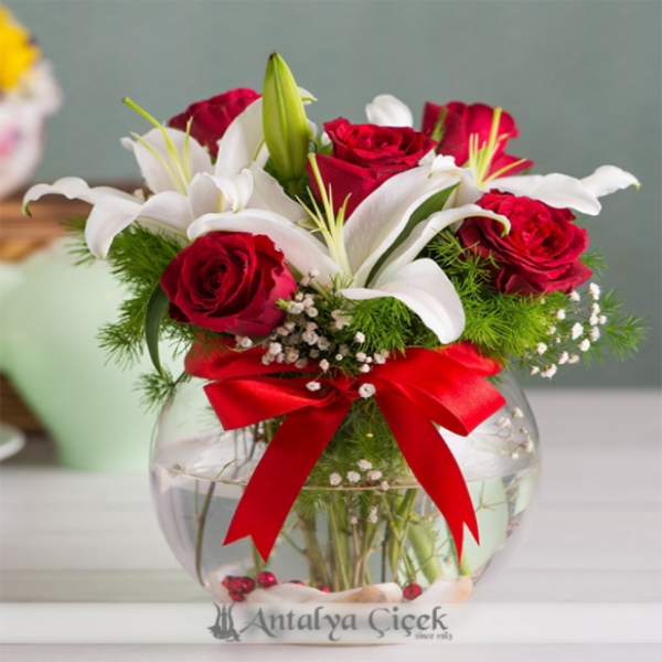 Ürün Kodu: LC75Cam fanus içerisinde 3 kandil beyaz kazablanka ve 5 adet kırmızı gülden oluşan sıcak sevgi aranjmanı ile sevginiz her zaman ilk günkü gibi olacak