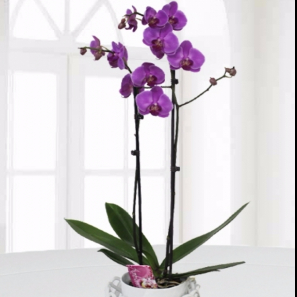 Ürün Kodu: LC148Çift Dallı Mor Orkide Dekoratif Seramik Örgü Vazo
