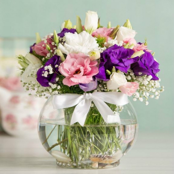 Ürün Kodu: LC242Renkli Mor ,Pembe ,Beyaz Lisiyantus Cam Arajman