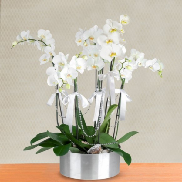 Ürün Kodu: LC1478 Dal Mor Orkide Beyaz Seramik Vazo