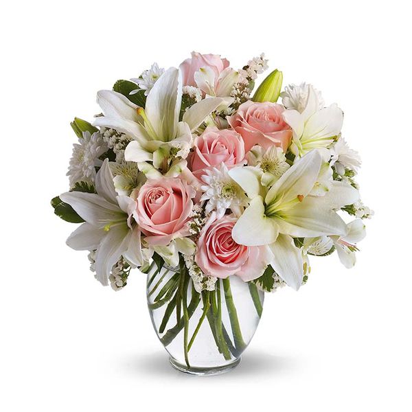 Ürün Kodu: LC18Cam vazoda pembe gül ve beyaz lilyumlar bulunmaktadır.